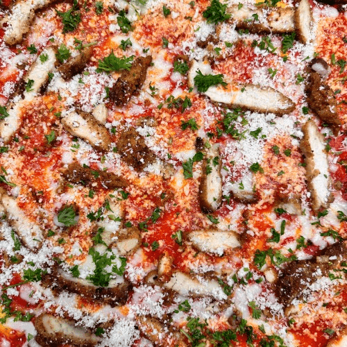 Breaded chicken fried in olive oil, lots of red sauce, romano, and mozzarella cheese.