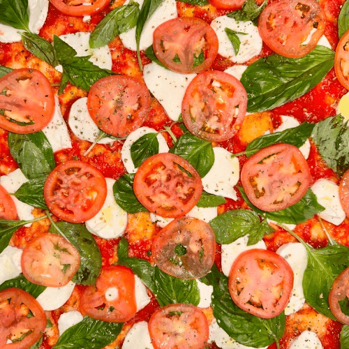 Fresh mozzarella, fresh basil, fresh plum tomatoes, and extra virgin olive oil.